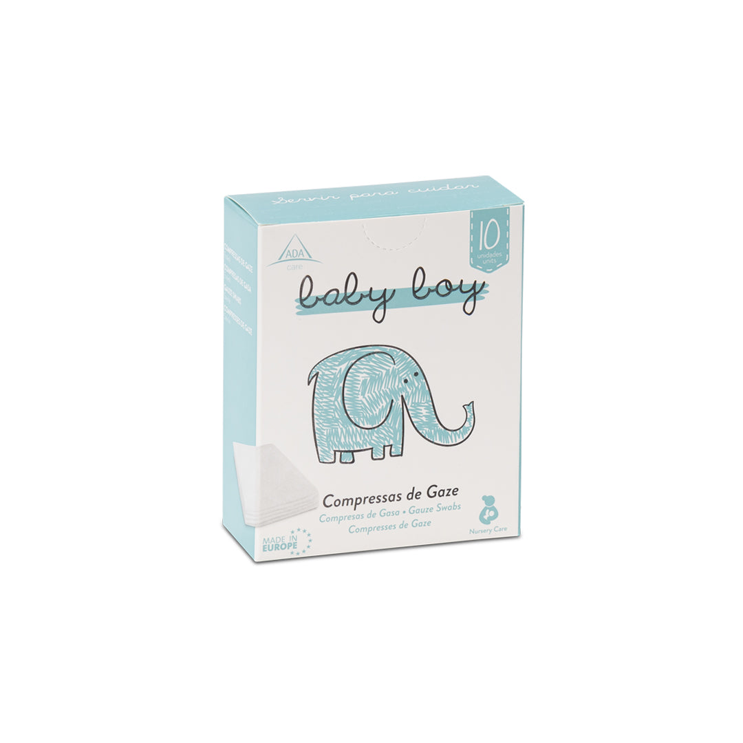 As Compressas de Gaze Esterilizadas – Menino são confecionadas em 100% algodão hidrófilo e esterilizadas para garantir limpeza suave e máxima higiene, ideais para os olhos e outras áreas sensíveis do bebé.