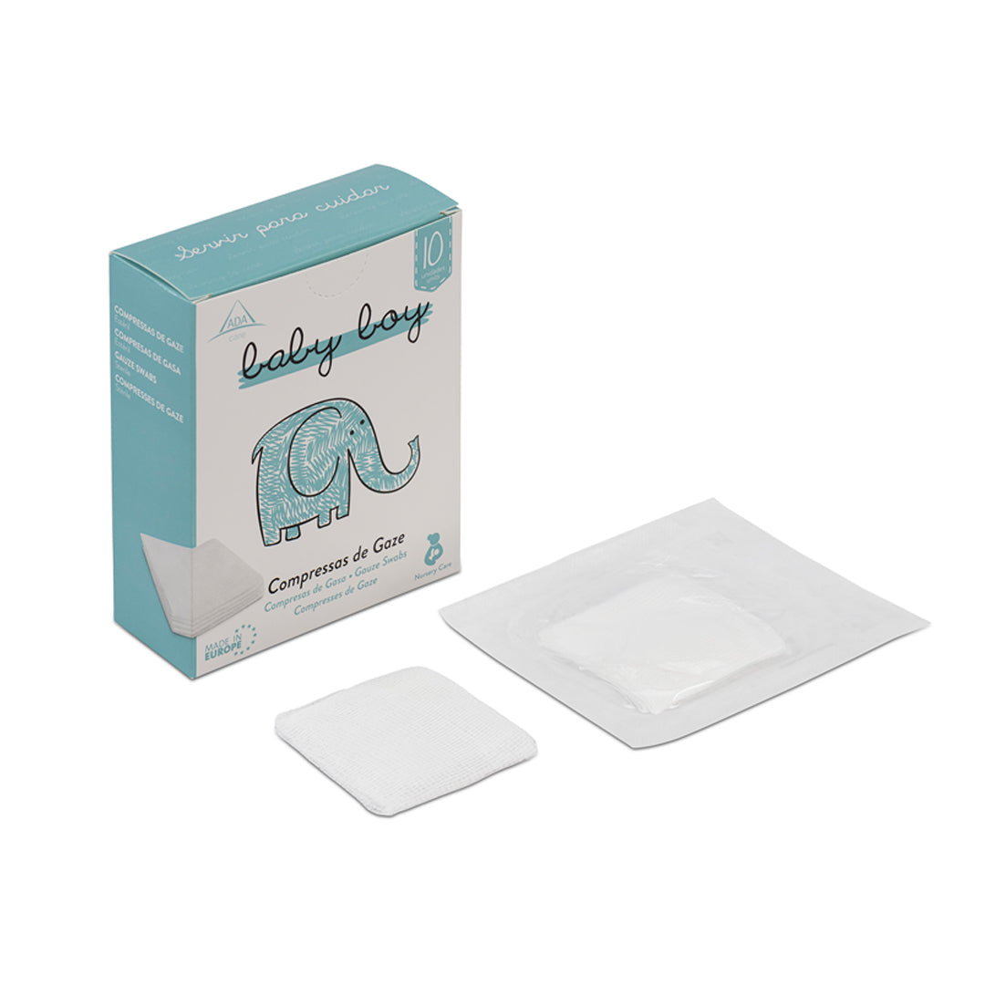 Cada compressa de gaze (ISO 14079) mede 5 cm × 5 cm e a embalagem contém 10 unidades, oferecendo praticidade e segurança no cuidado diário. São isentas de látex e ftalatos, proporcionando conforto e proteção à pele delicada do seu bebé.